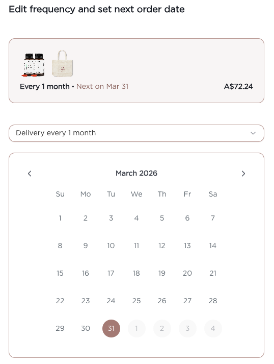 Select your new, preferred frequency and next preferred subscription date